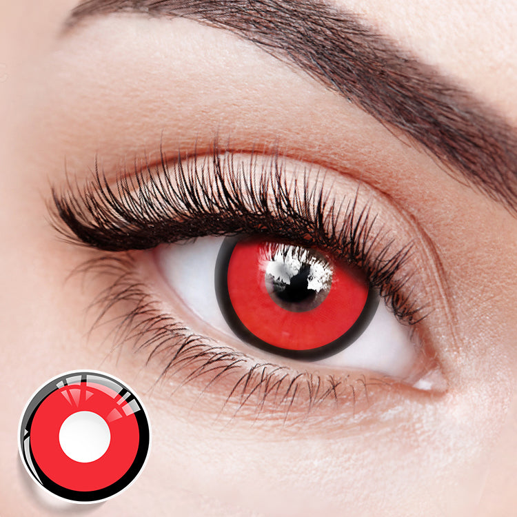 The "Crimson Circlet Flame Contact Lenses" draw inspiration from enigmatic flames and ancient myths. Combining deep crimson fire with a circular elegance, these lenses capture a mystical flame-like allure. Black outlines create a powerful and mysterious effect, evoking a dance of flames with every blink, casting an alluring and enigmatic glow.