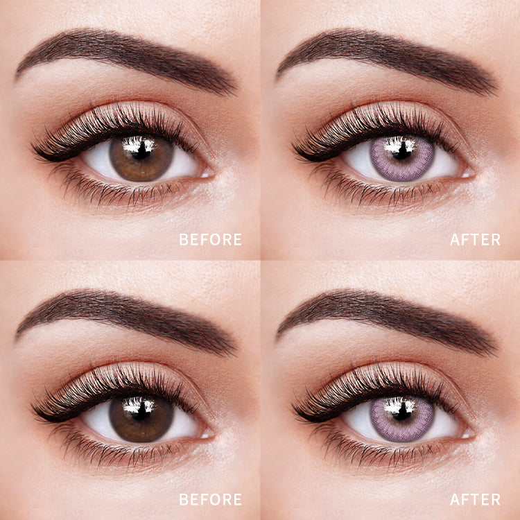 The Flora series contact lenses features a captivating purple tone with daisy-shaped flowers that blend seamlessly. Inspired by spring, create a natural and captivating look for everyday wear. They complement both dark and light-colored eyes, effortlessly enhancing your overall appearance. Pair them with various dresses and makeup styles to make your eyes shine with brilliance.