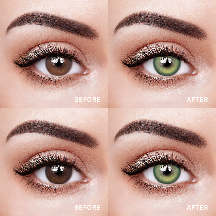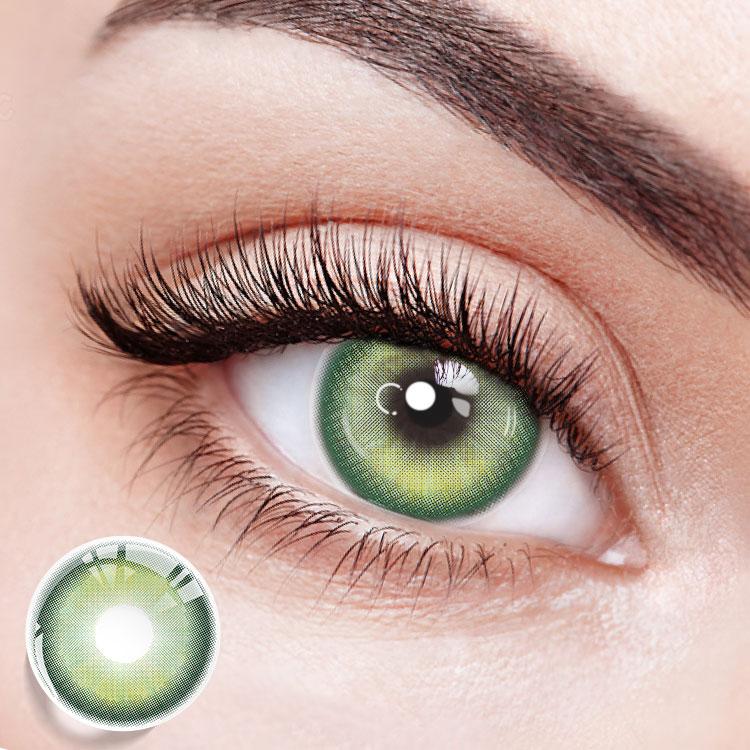 Graceful Mint Green lenses feature a bold, striking color combination inspired by the timeless beauty of nature. The deep green outer ring provides a rich, defined contrast, while the inner core blends soft light green and warm brownish-yellow tones, reminiscent of classic avocado hues. This unique fusion of colors creates a harmonious, earthy look that is both vibrant and natural, enhancing your eyes with a sophisticated and lively touch