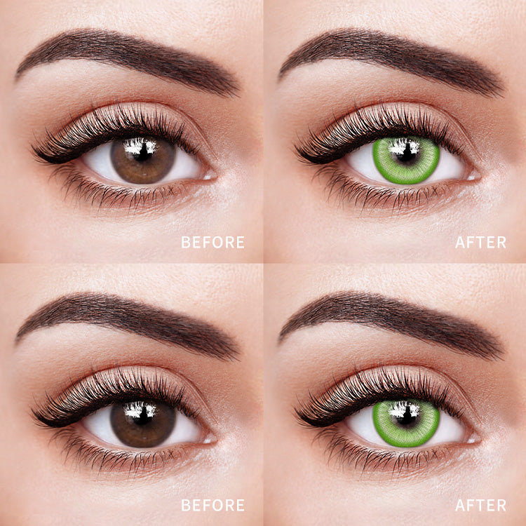 Hair Color: Warm blondes and redheads can choose green, hazel, or light brown lenses to enhance their features. Browns and blacks are flattered by honey, green, or blue lenses.