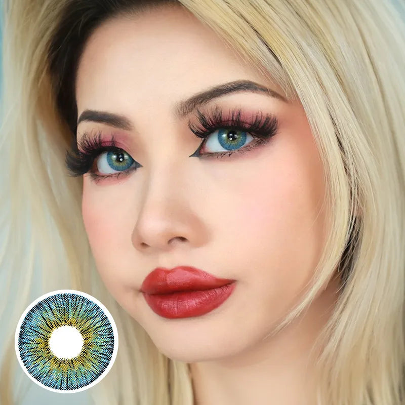 Inspired by the clarity of a summer sky reflected on still water, LumiRay Blue captures the essence of cool serenity and effortless elegance. The lens features icy blue tones woven with radiant light-ray patterns that extend softly from the center, giving the eyes a sparkling, multidimensional depth. A subtle limbal ring enhances contrast, making your gaze striking yet ethereal. Perfect for those who want to bring a touch of calm brilliance to their everyday look.