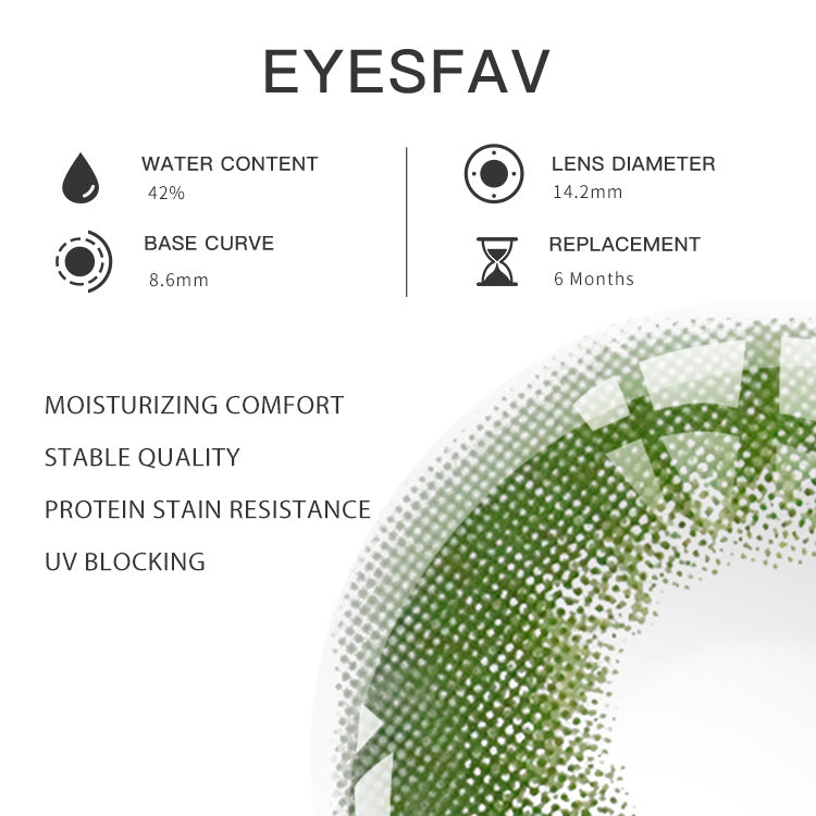 EYESFAV Profound Green lenses offer a deep, beautiful rich green color that will completely change your look, pairing incredible color opacity and without a limbal ring, you can achieve an extremely natural finish.