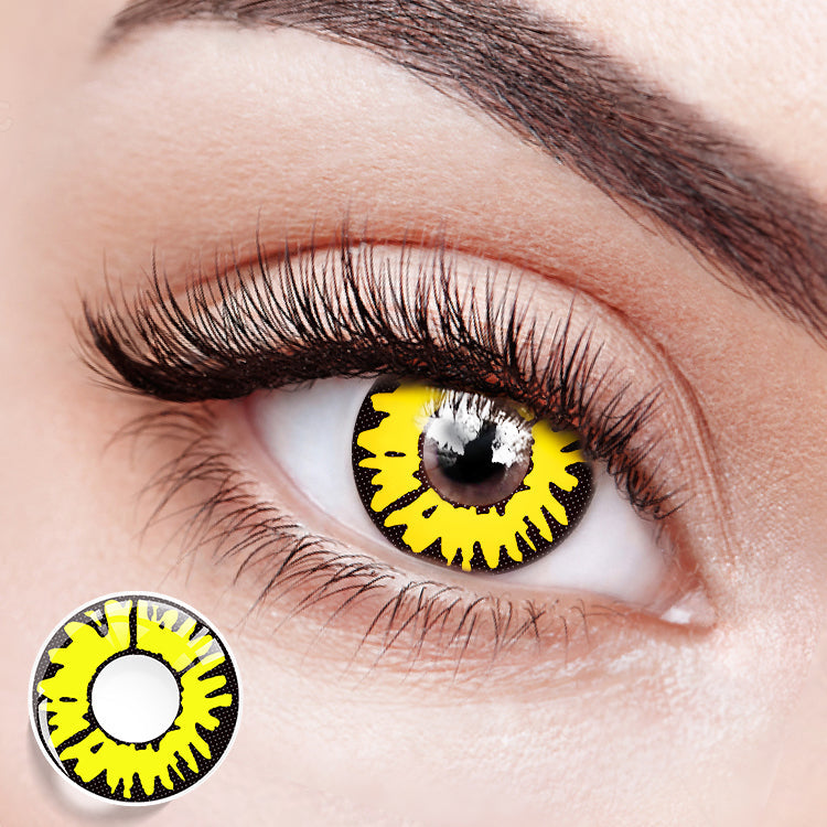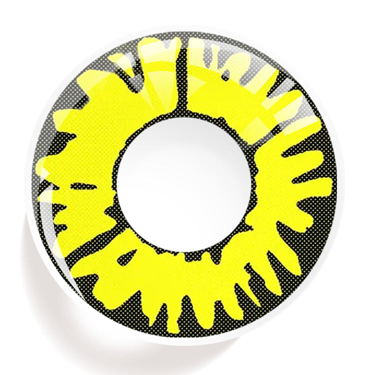 The uniquely designed Twilight Shade Yellow contact lenses combine a black outer ring with an irregular yellow ring pattern, presenting a mysterious and eye-catching visual effect. The black outer ring adds a touch of mystery to the eyes, while the yellow ring pattern emits a bright and warm atmosphere. This design highlights individuality and uniqueness, injecting a different kind of radiance into the eyes, making you uniquely charming in a crowd.